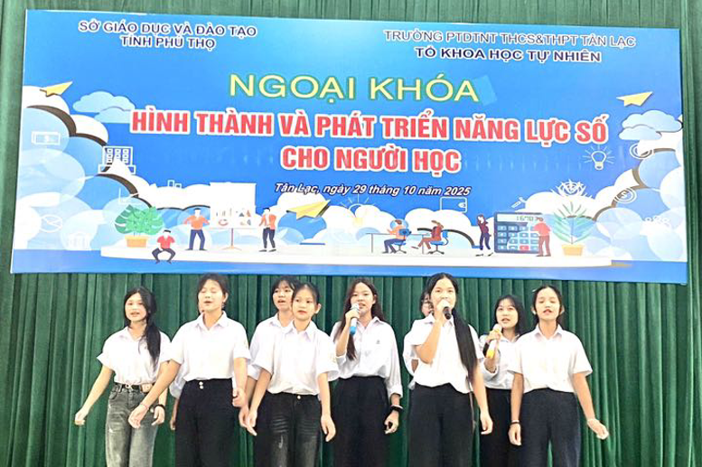 Chiều ngày 29/10/2025, tổ Khoa học tự nhiên – Trường PTDTNT THCS & THPT Tân Lạc tổ chức hoạt động ngoại khoá với chủ đề “Hình thành và phát triển năng lực số cho người học”. Đây là một trong hai nhiệm vụ trọng tâm của tổ trong năm học 2025–2026 nhằm góp phần nâng cao năng lực ứng dụng công nghệ cho học sinh trong thời đại số.