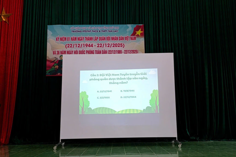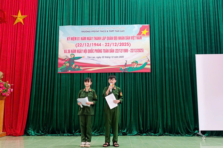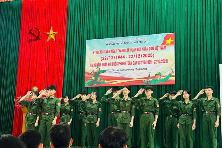 Sáng ngày 22/12/2025, trường PT DTNT THCS&THPT Tân Lạc đã tổ chức buổi hoạt động ngoại khóa với các hoạt động giàu ý nghĩa, nhằm ôn lại truyền thống vẻ vang của quân đội ta.