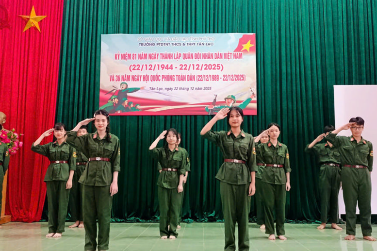 Nhân dịp kỷ niệm 81 năm Ngày thành lập Quân đội nhân dân Việt Nam, sáng ngày 22/12/2025, trường PT DTNT THCS&THPT Tân Lạc đã tổ chức buổi hoạt động ngoại khóa với các hoạt động giàu ý nghĩa, nhằm ôn lại truyền thống vẻ vang của quân đội ta.