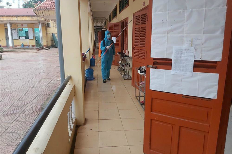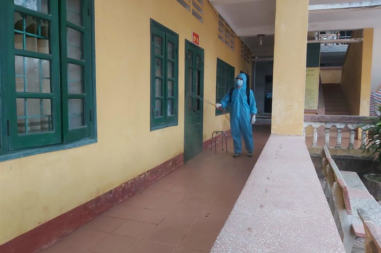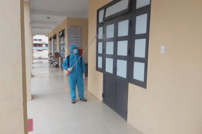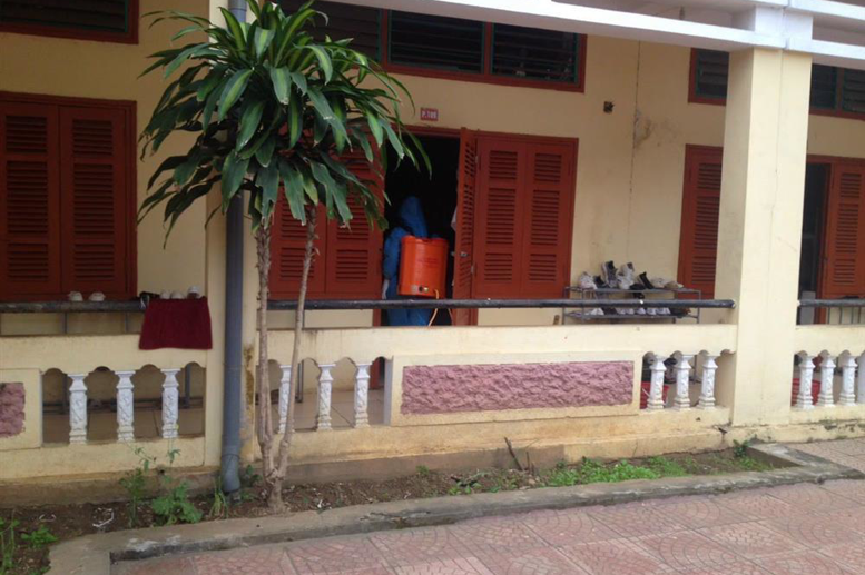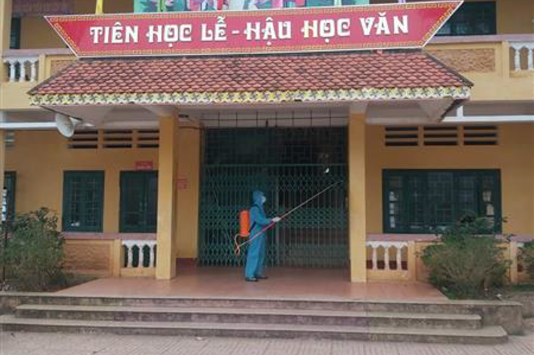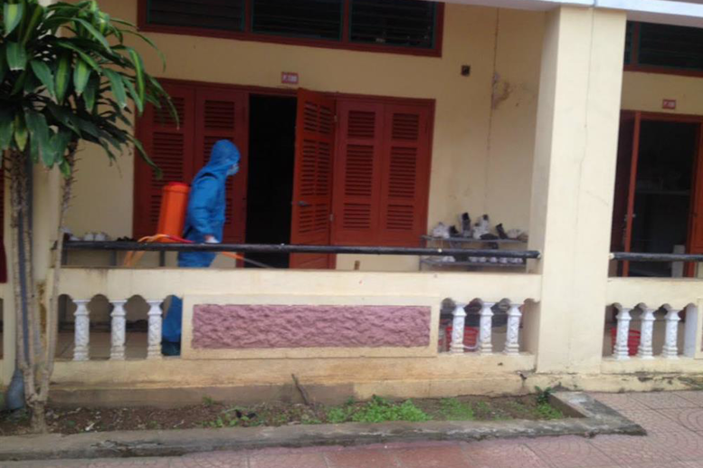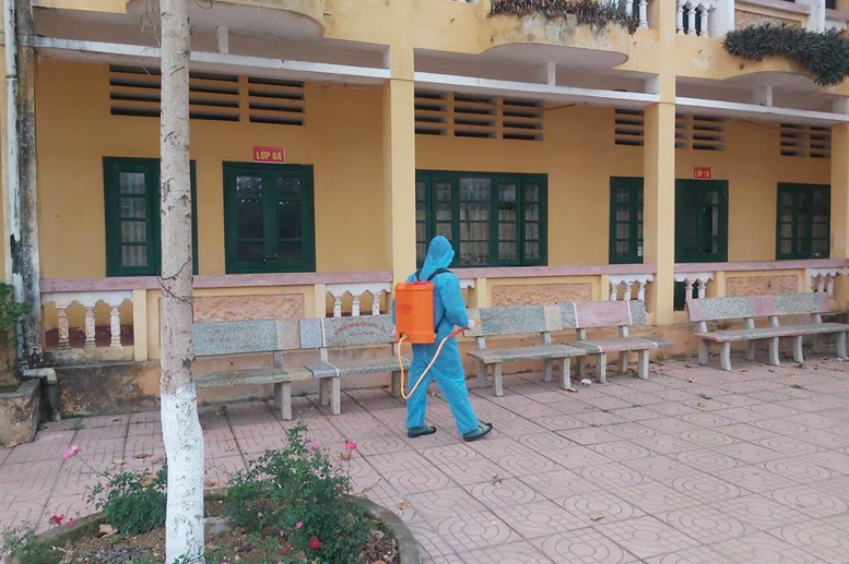 Trường DTNT Tân Lạc phun khử trùng trước khi học sinh đi học trở lại